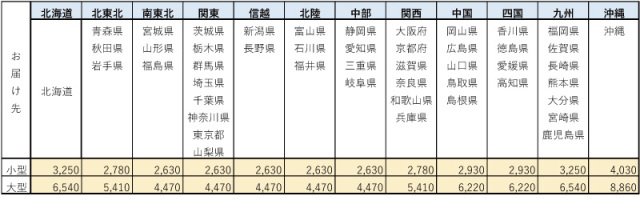 宅配料金表