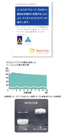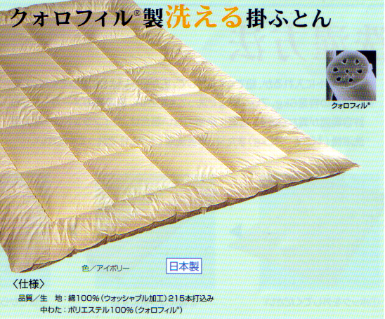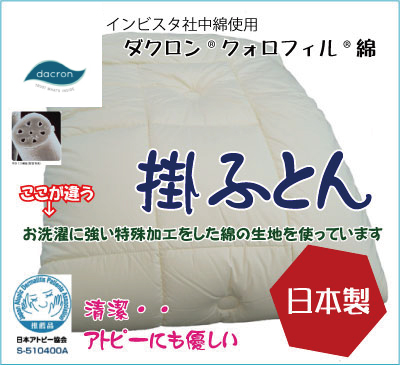 インビスタのダクロン掛け布団です。インビスタのダクロン(R)7-hole(R)と言う繊維の1本、1本に7つの穴を空けた軽くて、しなやかな綿を使っています。