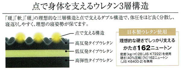 ◎高通気性・高反発、低反発のウレタンを多層加工した敷き布団は適度な反発力により寝返りの打ちやすい敷布団です。